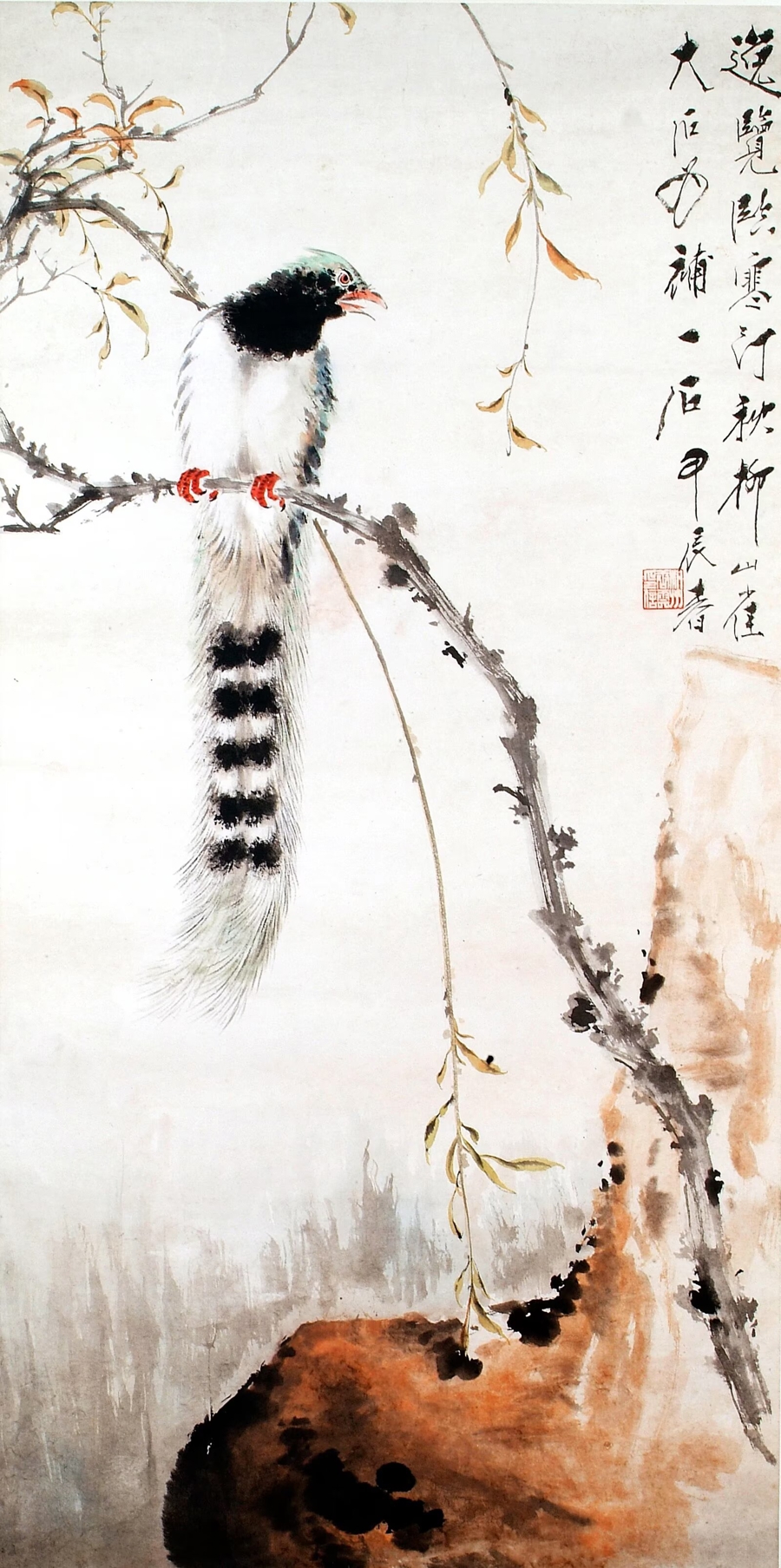 父亲在教学上很严格,但并不严厉,他时常让我临摹其他画家的优秀作品。江寒汀先生有一幅《秋柳山雀图》过去一直悬挂于上海中国画院的大厅,有一次拿下来重新装裱时,父亲让我进行临摹。我很认真地完成了这幅作业,他觉得我画得不错,就欣然为我补了一块石头,这是父亲与我合作的第一幅画,我一直珍藏到现在。