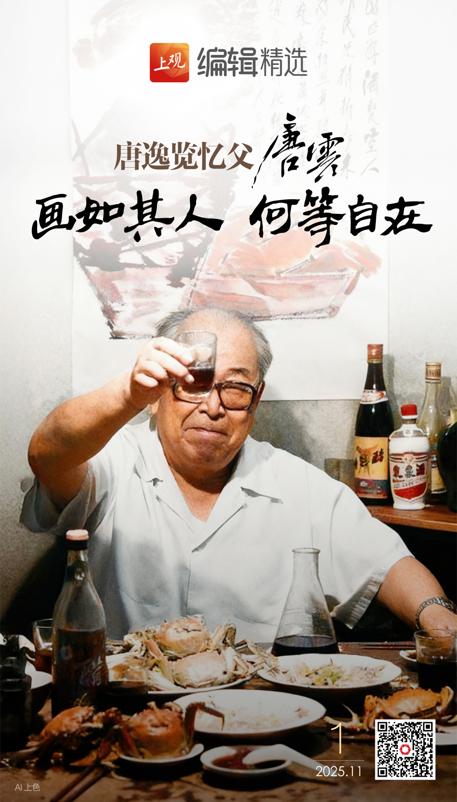 唐逸览:我父亲有一句名言:“人生之欢,莫过结交;人生之苦,莫过失友。”他一生爱画、嗜酒、好收藏。他为人坦诚、旷达,朋友遍布书画、文学、史学等很多领域。父亲喜欢与朋友们喝酒畅聊,那是他获取知识的重要途径。